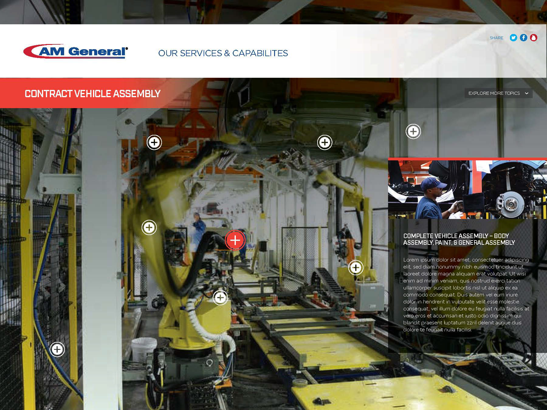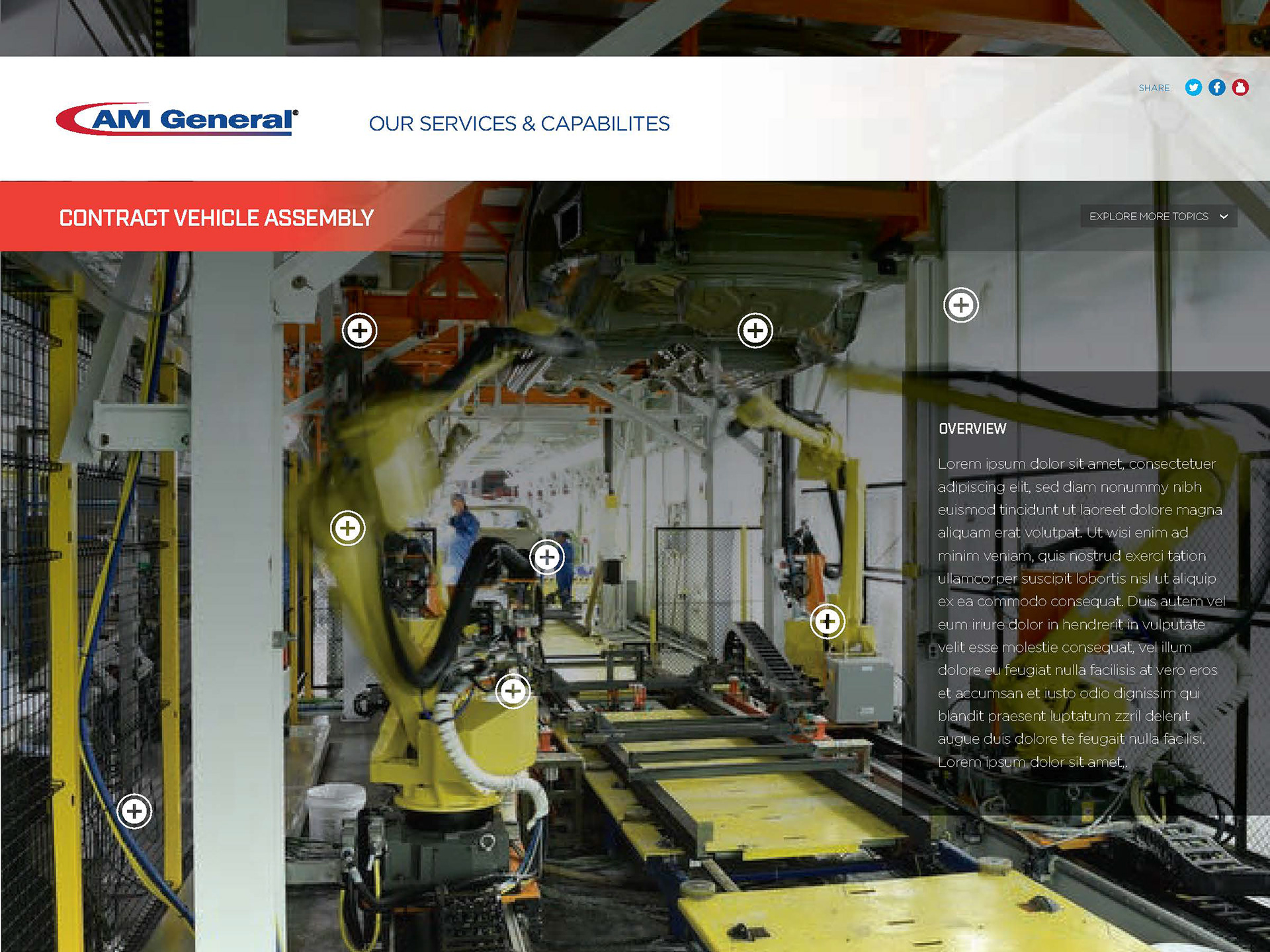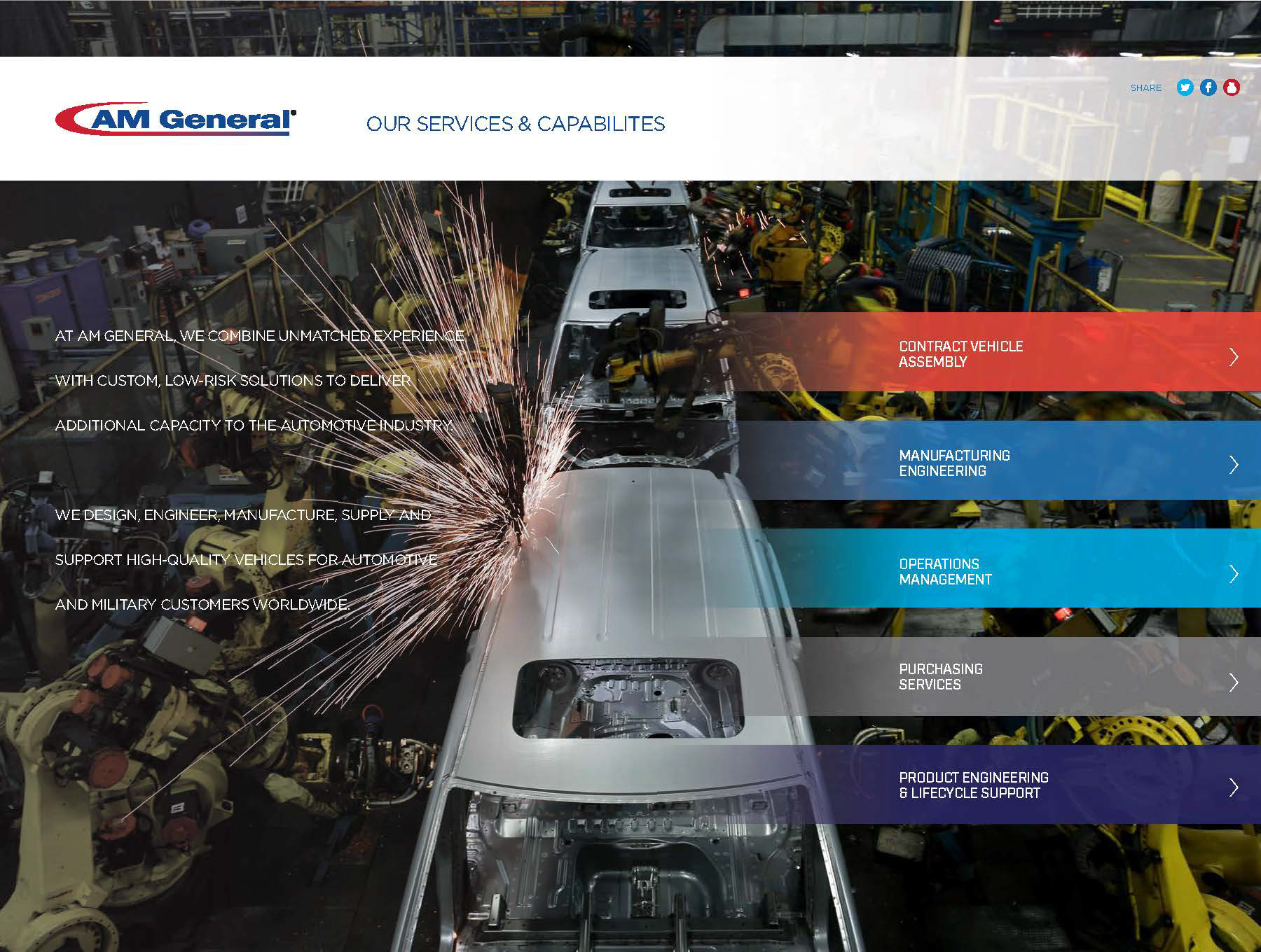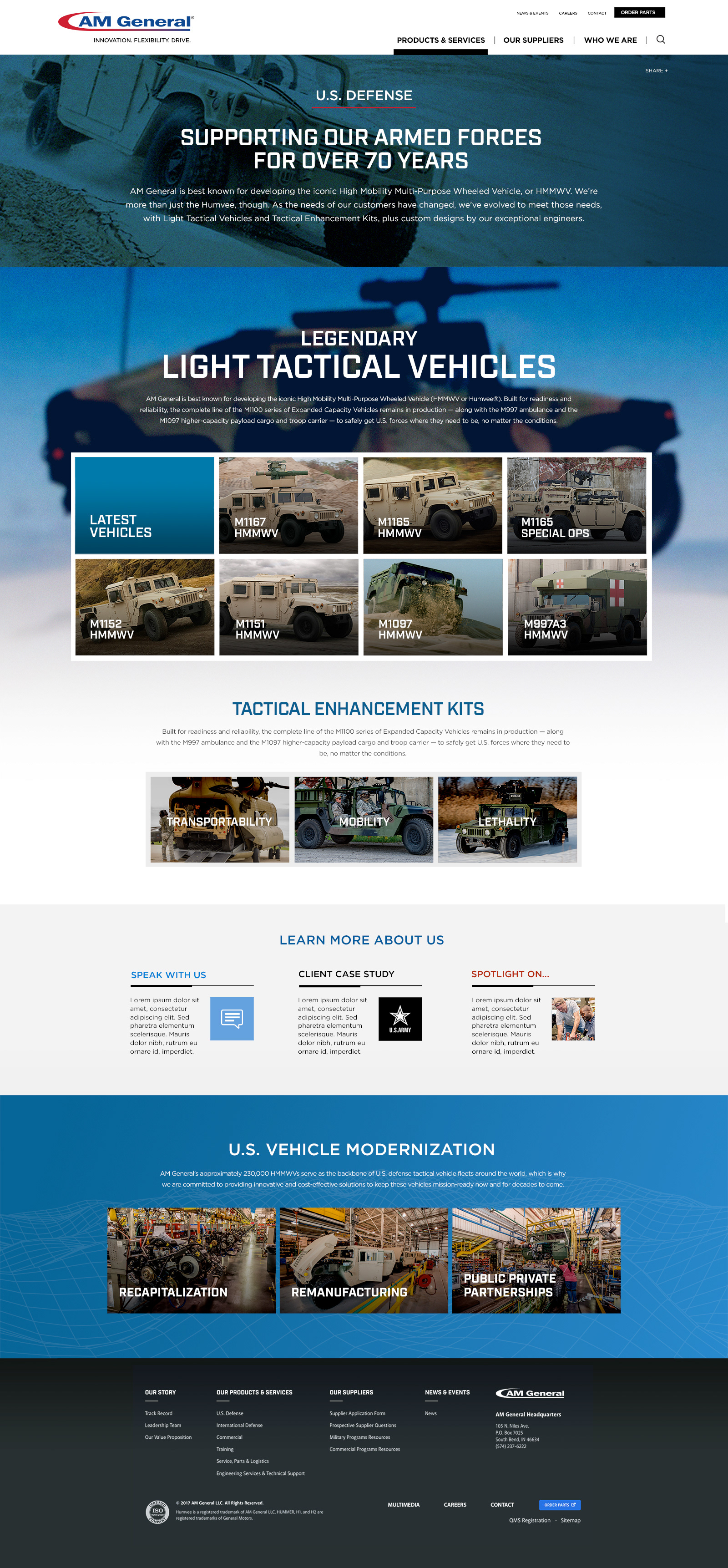 We partnered with AM General, a U.S. car manufacturing contractor specializing in military vehicles, to updated its website and social presence.