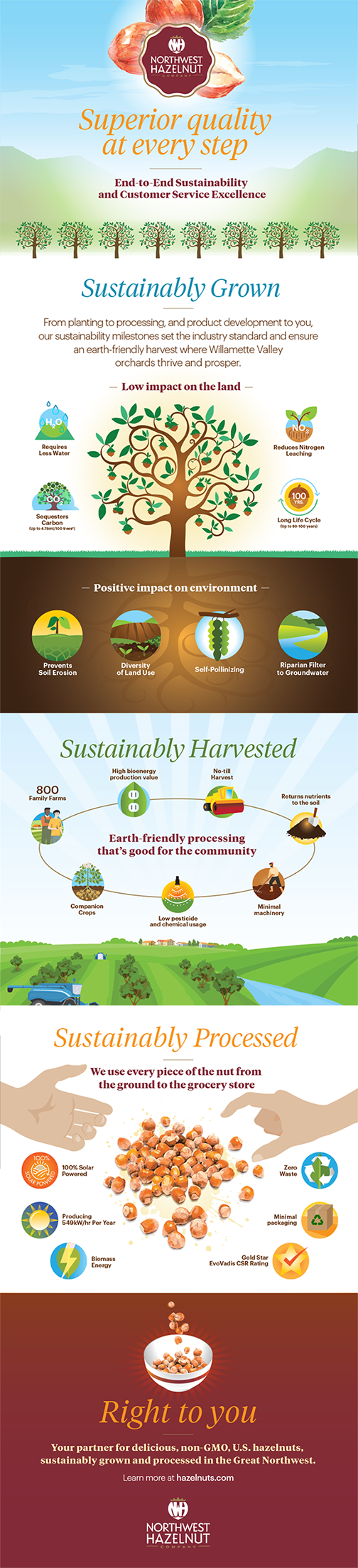 We designed and developed a highly visual infographic to help promote Northwest Hazelnut's sustainability and customer service excellence through social media channels.