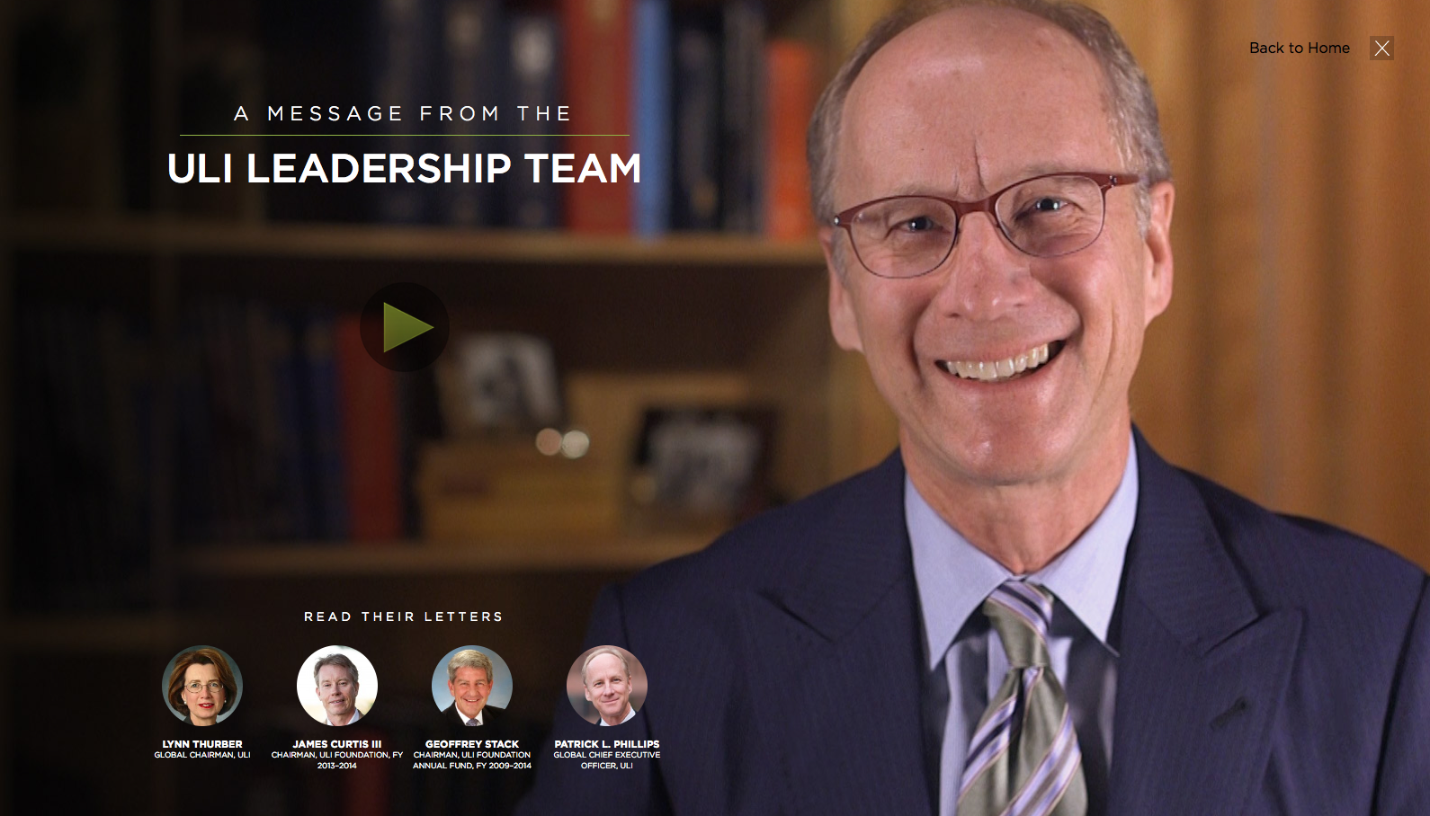 Lead the design and development of an interactive annual report for ULI including a video message from their executive director.